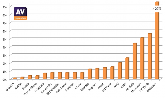 Takyto rebricek ma nulovu vypovednu hodnotu ak sa vysledok neprepocita cez mieru falosnych pozitiv. Napr. "vitazi" G Data alebo Panda mali v septembri 2012 5x viac falosnych pozitiv ako ESET