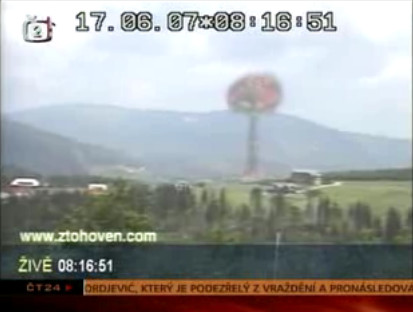 Podobný prípad ale iného typu sa odohral v susednej Českej republike. V lete 2007 tam umelecká skupina Ztohoven do vysielania panorámy Krkonôš na celoštátnej televízii ČT 2 vložila obraz atómového výbuchu s atómovým hríbom. Skupina získala priamy fyzický prístup ku kamere natáčajúcej panorámu a modifikovala odosielaný obraz.