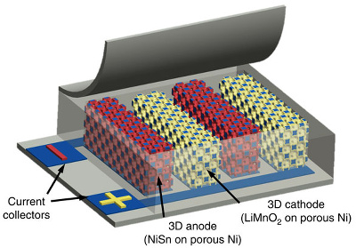 Inováciou je ale použitie katódy a anódy s trojdimenzionálnou mikroštruktúrou, ktorá mnohonásobne zväčšuje povrch elektród a zároveň skracuje cestu pre lítiové ióny pri vybíjaní a nabíjaní.