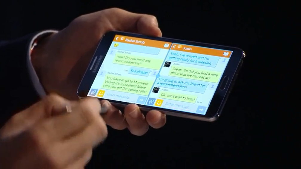 19:38 Ďalšou softvérou novinkou v Note 3 je Multi Vision, zobrazovanie videa rozložené na displeje viacerých Note 3 položených vedľa seba pre dosiahnutie celkovo väčšej zobrazovacej plochy