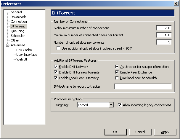 V štandardnom nastavení po prvom spustení novej verzie je vyhľadávania lokálnych peerov povolené a nastavené je nelimitovania upload rýchlostí pre týchto peerov.