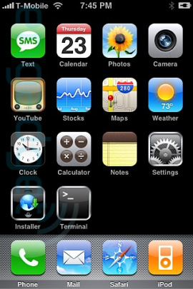 Odblokovaný iPhone, nové položky Installer a Terminal v menu, zmeniteľné APN