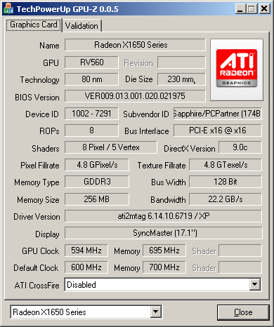 hehe zaujimavy softik, dobry napad po uspesnom CPU-Z. moja X800 GTO je uz asi dost stara ked je vyrabana 130 nm technologiou, ale mne staci :P