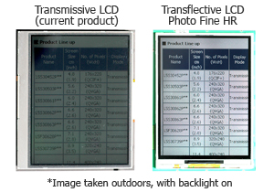 Porovnanie nového displeja (vpravo) so štandardným transmisívnym (vľavo) na vonkajšom svetle (foto: Epson Imaging Devices Corporation)